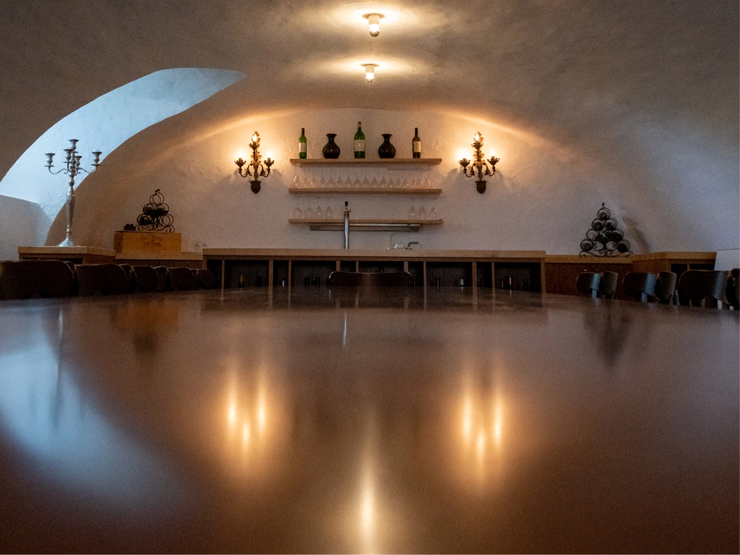 Im Gewölbe erleben Ihre Gäste gediegene Behaglichkeit in urigem Gemäuer. Bei edlen Tropfen und guten Gesprächen werden die Nächte für bis zu 22 Personen hier gerne länger. Die rustikale Tafel lässt sich sogar auf bis zu 60 Personen erweitern.